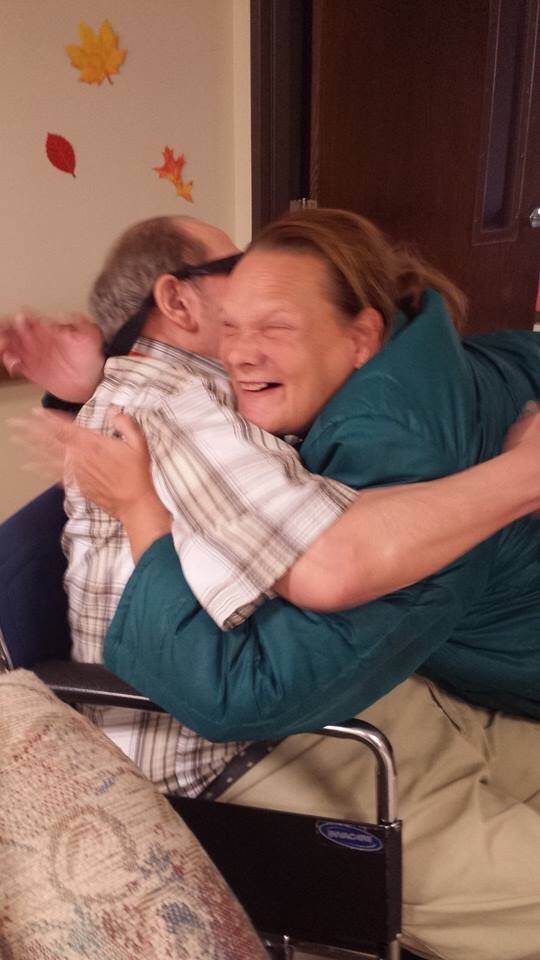 We have talked many times about where I work. My residents are Visually Impaired. When one of them passes on its hard for some of are residents to get out and go to their funeral. We have memorials here in the building in honor of the resident who passes away. This allows residents to be able to talk about their “good times”. We did this recently for “Jack” when he died. We had quite a few who came down. They sat in the dining-room. We have couches that make a square all the way around the room, They started from right to left, “Emmet” was on the other side which would make her last. They let everyone know that they had to wait their turn. Each one of the residents were standing up telling the preacher about one thing they remember doing with “Jack” or something funny he said. All the other residents and staff quietly sat and listened meanwhile Emmett was raising her hand, standing halfway up to try to raise it further, she would get tired of holding that hand up and start in with the other, grunting, moaning, whispering pick me pick me…